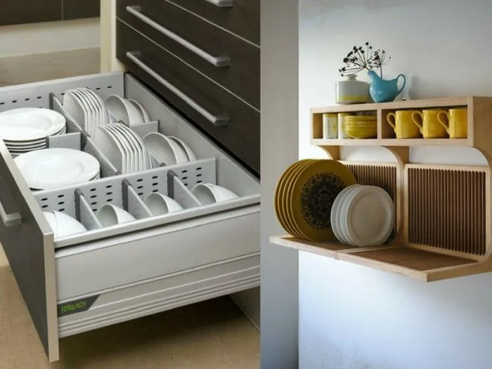 Lebih elok jika pinggan mangkuk disusun di dalam kabinet yang tertutup serta mempunyai bahagian untuk diletakkan agar bahagian ini kelihatan lebih kemas dan tidak terkena habuk.