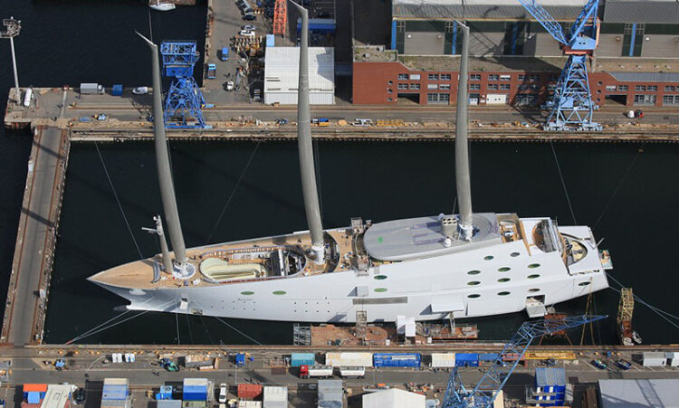 Kapal layar gergasi bernilai $ 450million (RM1.99billion) dilihat telah berlayar dari Pelabuhan Nobiskrug di Jerman petang semalam dalam perjalanannya ke Selatan Sepanyol, di mana ia akan menjalani ujian di laut sebelum ia diserahkan kepada pemilik yang merupakan seorang hartawan terkenal.