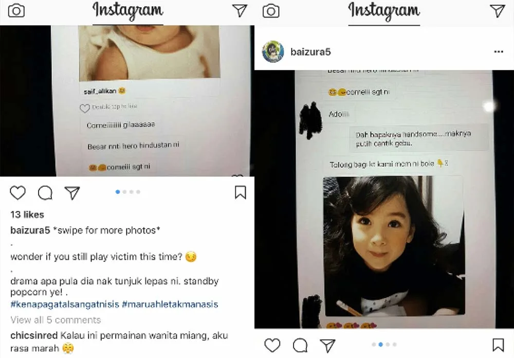 Namun baru-baru ini, beberapa foto yang telah dimuat naik oleh isteri kepada pelakon Aqasha iaitu Noor Baizura seolah-olah mempunyai kaitan dengan isu ini. Baizura menunjukkan beberapa ‘screenshot’ perbualan antara suaminya dengan seorang artis wanita di akaun Instagram miliknya.