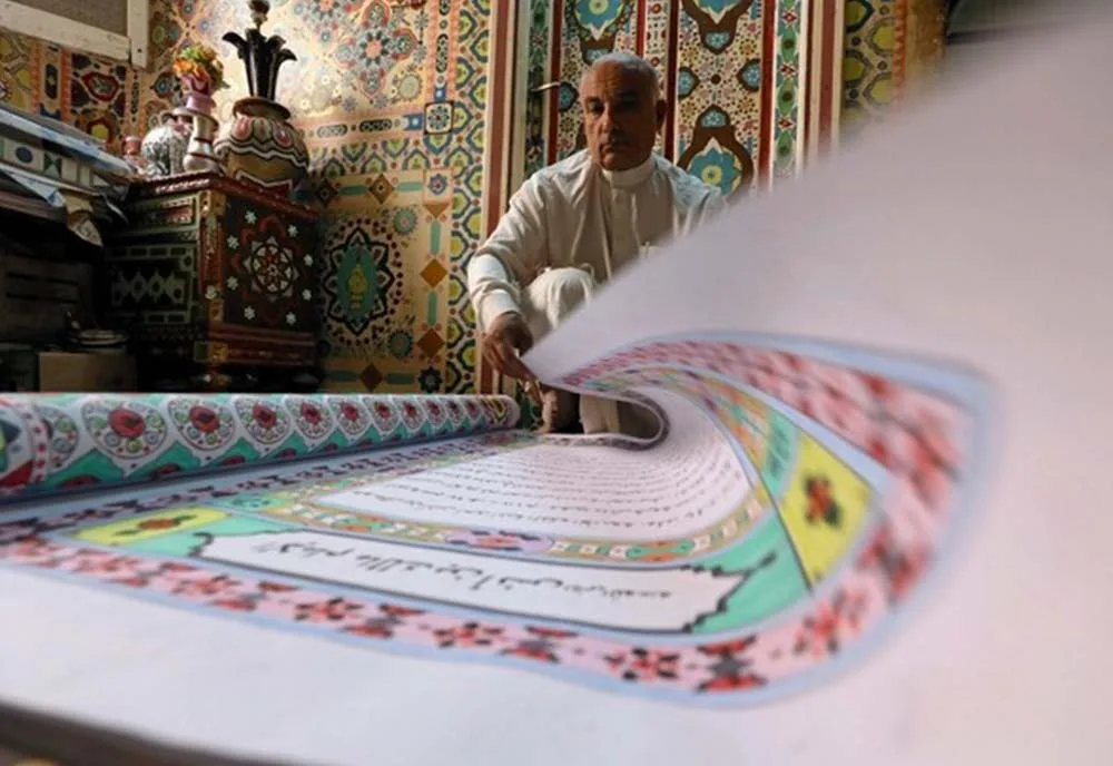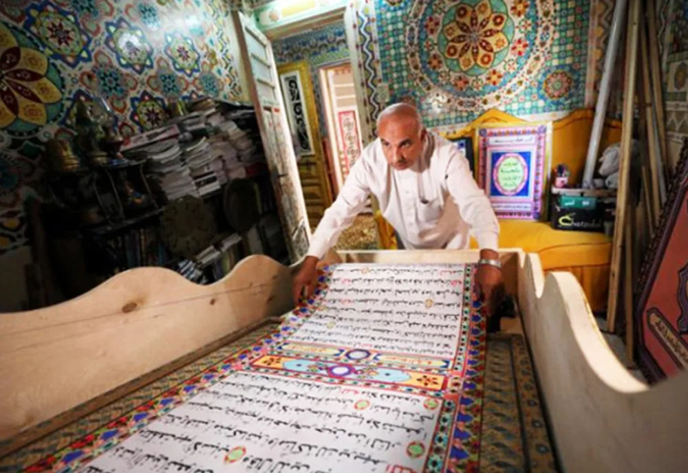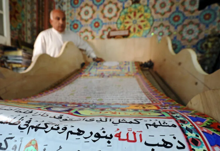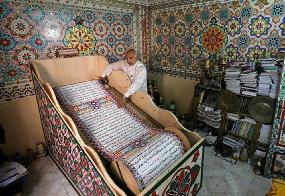 Seniman ini bernama Saad Mohammed dan ketika dia memamerkan hasil karyanya, terlihat kaligrafi di tembok dan bumbung rumahnya di Kota Belqina, sebelah utara Qairo. Mohammed mengeluarkan kitab suci umat Islam itu di atas gulungan kertas sepanjang 700 meter.