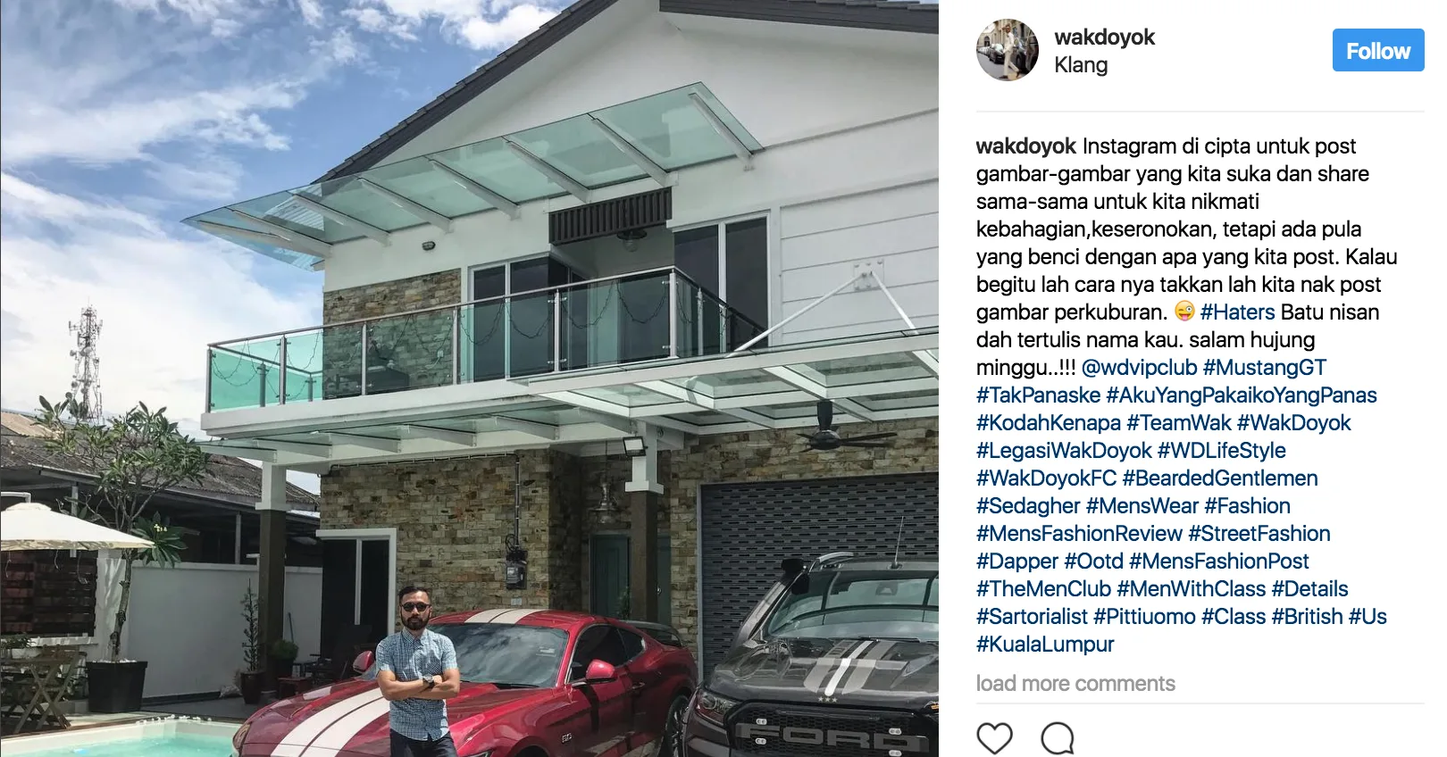 Personaliti terkenal dan usahawan Wak Doyok ada memuat naik gambar banglo itu yang terletak di Klang, Selangor sambil memeluk ibunya dan dia bertuah kerana sempat berbakti kepada orang tuanya.