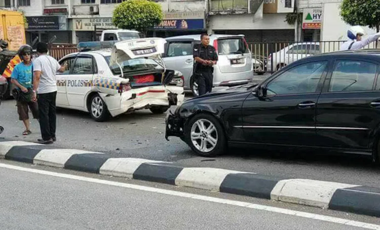 Menurut sebuah posting di Facebook, nampaknya kejadian itu terjadi pada hari Jumaat, 21 Julai sekitar jam 3.30 petang di Jalan Loke Yew di mana sebuah kereta Mercedes sedan merempuh belakang kereta polis yang teroerangkap dalam kesesakan dalam lalu lintas.