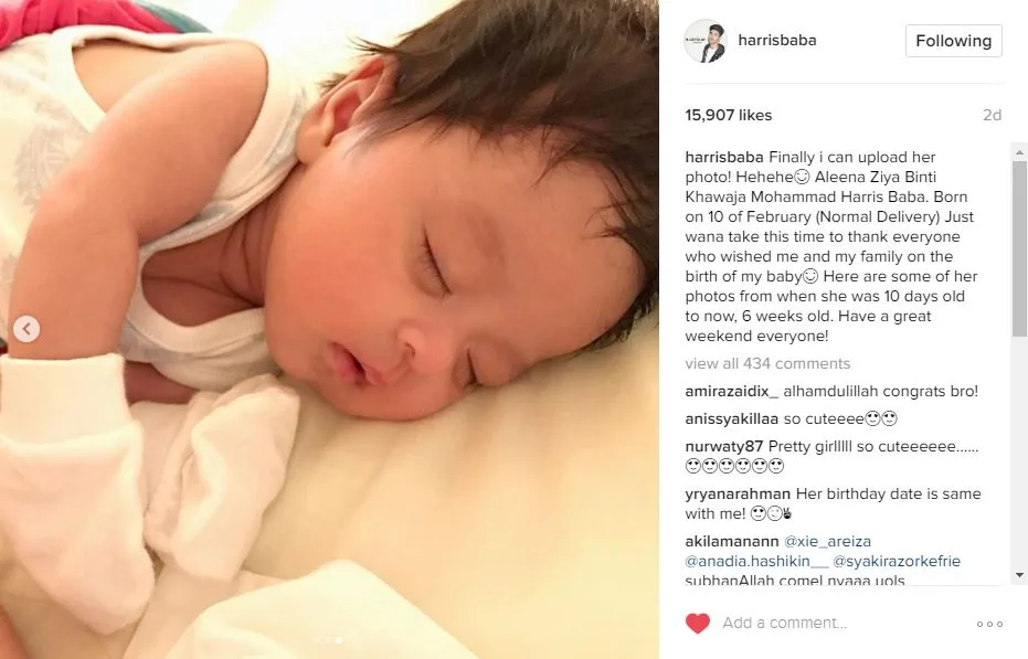 Februari yang lalu, penyanyi Khawaja Mohammad Harris Baba atau lebih dikenali sebagai Harris Baba telah menimang cahaya mata comel yang diberi nama Aleena Ziya.