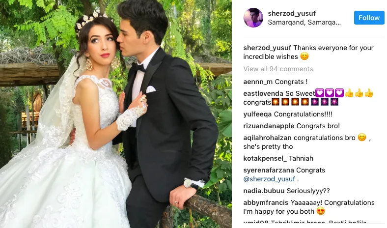 Walaupun tidak memberi sebarang kenyataan mengenai perkahwinan tersebut, Sherzod Yusuf atau lebih mesra dipanggil Zod hanya mengucapkan;