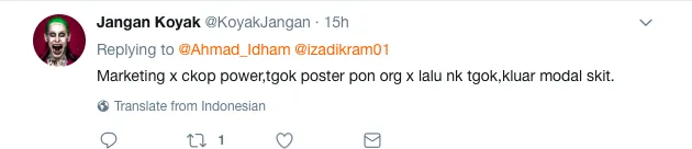 ” Marketing tak cukup power, tengok poster pun orang tak lalu nak tengok, keluar modal sikit”