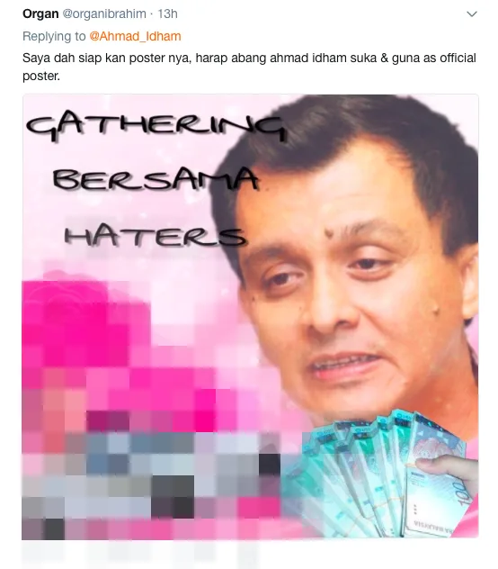 Dek kerana tohmahan tersebut, melalui akaun twitternya, Ahmad Idham dikatakan mengamuk dan mengajak ‘haters’ nya bersemuka mengeluarkan pendapat masing-masing.