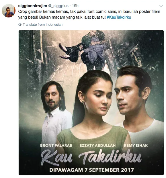” Crop gambar kemas kemas, tak pakai font comic sans, ini baru lah poster filem yang betul! Bukan macam yang taik lalat buat tu! ”