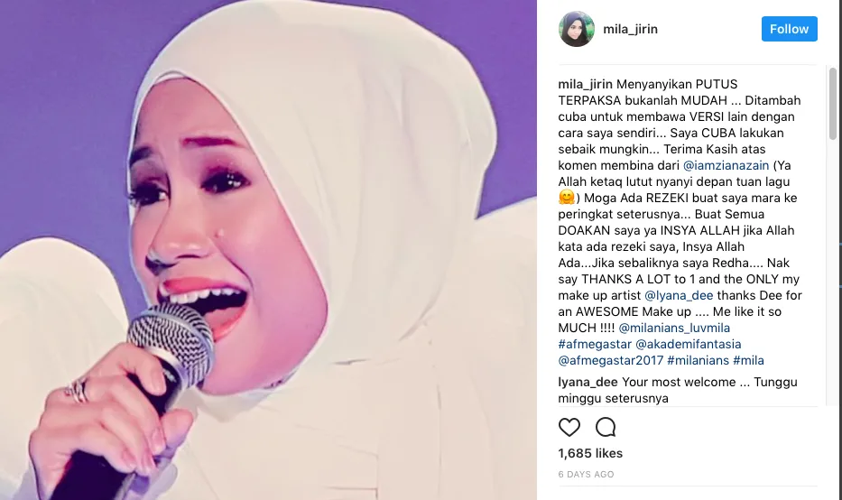Malah para penonton turut menganggap Mila lebih layak untuk berada di pentas Top 12 AF Megastar berbanding peserta-peserta lain.