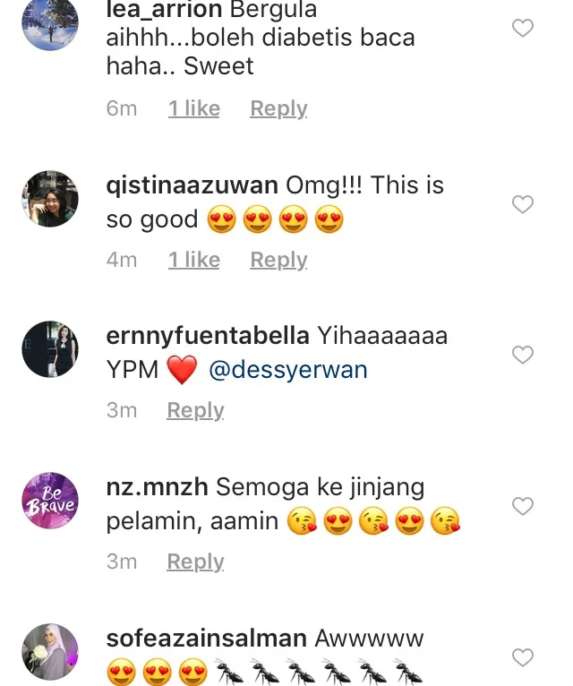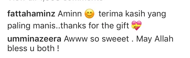 So sweet! Bukan setakat peminat malah pelakon, Ummi Nazeera turut memuji sikap romantis kedua – dua pasangan ini diruangan komen tersebut.