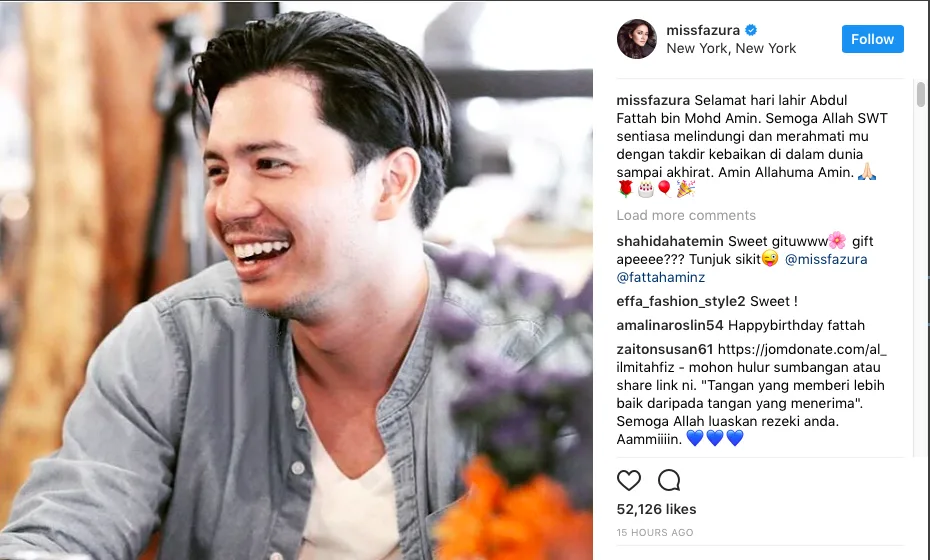 Begitulah ucapan Nur Fazura atau lebih dikenali sebagai Fazura yang telah memuat naik gambar Fattah Amin beserta ucapan Selamat Hari Lahir di akaun Instagram nya.