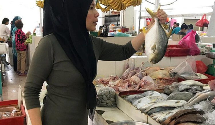 Apa yang mengejutkan, Sheila masih nampak bergaya walaupun ke pasar untuk membeli ikan.