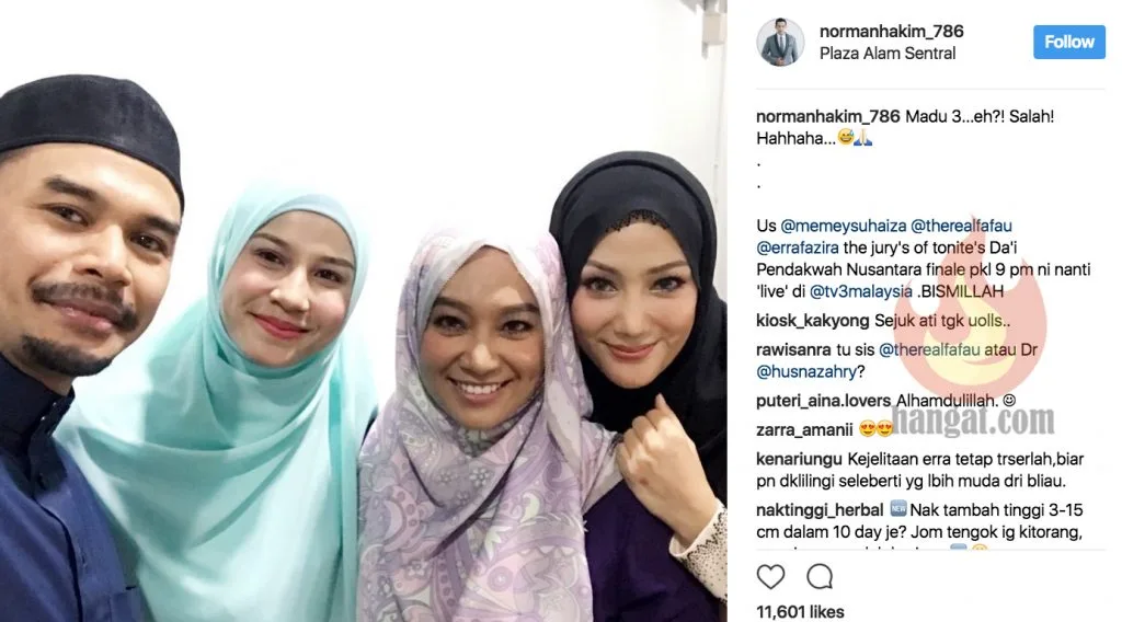 Apa yang menarik perhatian murai.my adalah, Norman Hakim telah memuatnaik sekeping foto dia bersama 3 orang jelitawan termasuk isterinya. Memey Suhaiza, Erra Fazira dan Fara Fauzana nampaknya bersama-sama dengan Norman bagi memberikan markah pada kesemua peserta Da’i Pendakwah Nusantara.