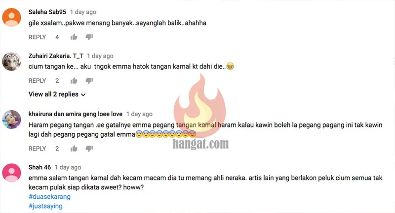 Ada juga netizen yang mengecam tindakan Emma mencium tangan Kamal kerana mereka berdua bukan mahram.