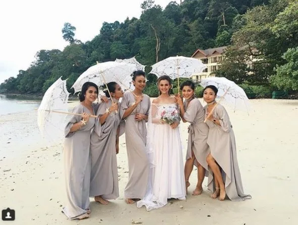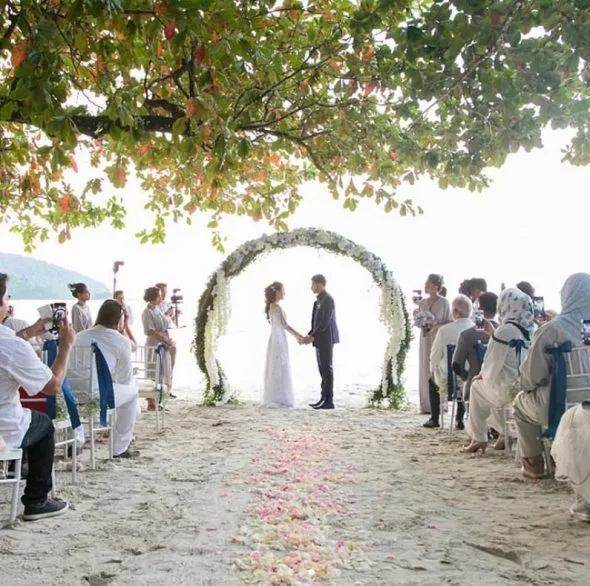 Bertemakan Beach Wedding, gambar yang dikongsi itu telah menimbulkan kecaman dari netizen dimana rata – ratanya menganggap tema tersebut tidak ubah seperti tema perkahwinan di barat.