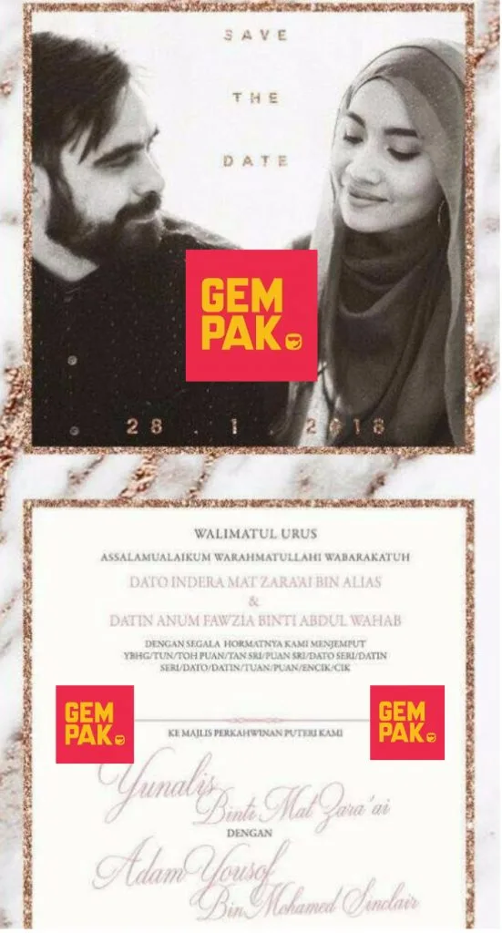 Menurut kad jemputan itu, majlis perkahwinan akan berlangsung pada 28 Januari tahun depan, dan telah dilaporkan bahawa lokasinya di Pusat Konvensyen Putrajaya.