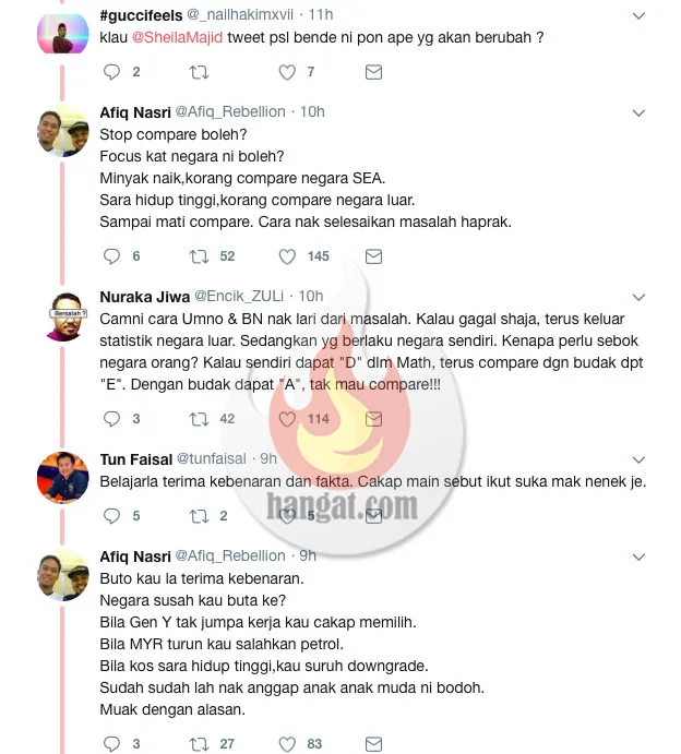 Terbaru,penyanyi Datuk Shiela Majid juga melakukan perkara yang sama apabila meluahkan rasa kecewanya dengan keadaan ekonomi negara yang semakin teruk teruk dan kos sara hidup yang semakin tinggi gara.