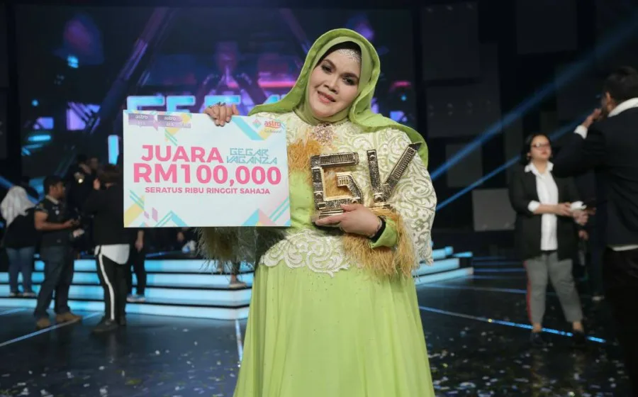 Sekali lagi tahniah kami ucapkan buat Aishah yang muncul sebagai juara Gegar Vaganza musim keempat selepas diumumkan oleh pengacara GV, Nabil Ahmad dan Jihan Muse.