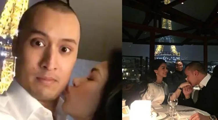Bersaksikan Menara Eiffel, mereka kelihatan begitu romantik makan malam bersama dan disinari cahaya lilin yang bergemerlapan.