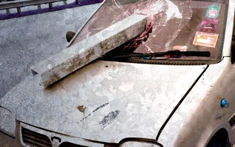Umpama salah satu babak dalam filem Final Destination. Foto ini dari seorang pengguna media sosial di Twitter bernama Cik Senah Ronggeng, di mana kes ngeri yang tidak dapat di duga telah berlaku pada kereta kakaknya.