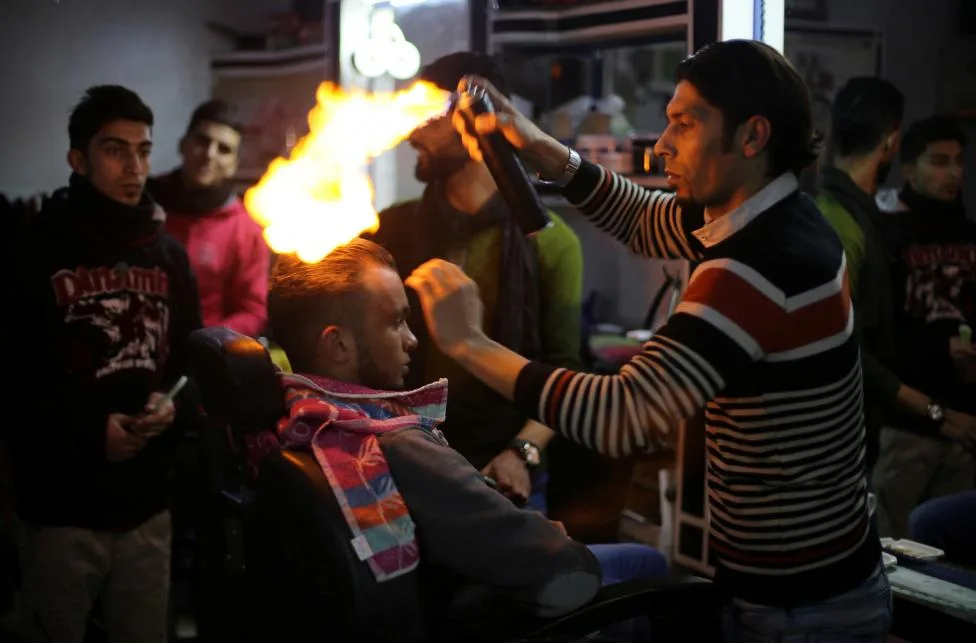 Lelaki berusia 37 tahun tersebut bukan setakat mendandan atau memotong rambut tapi juga membakarnya. Mengejutkan apabila dia menggunakan api untuk pastikan rambut pelanggannya kelihatan menarik.