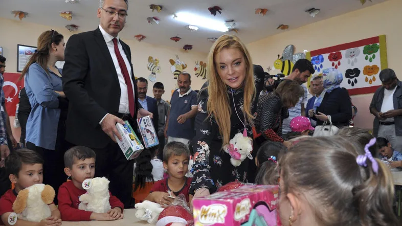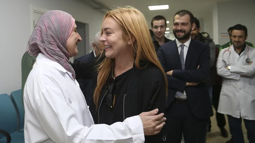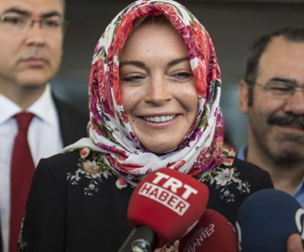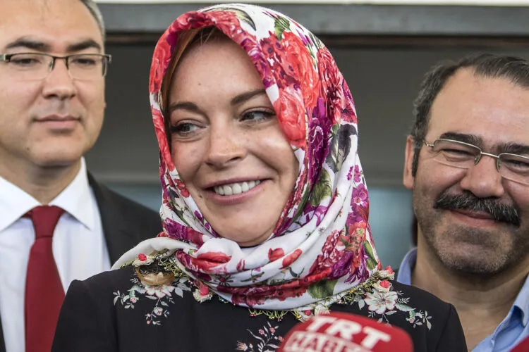 Lindsay memakai tudung kerana baru sahaja kembali dari lawatannya ke Turki. Disana dia bertemu dengan presiden Erdogan, dan Lindsay memakai tudung sebagai menunjukkan rasa hormat memasuki negara dengan majoritinya Muslim.