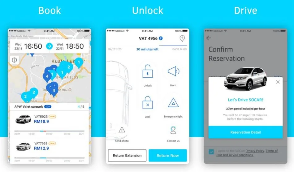 SoCar, salah satu perkhidmatan menyewa kenderaan mengikut jam daripada Korea Selatan kini telah memperluaskan penggunaan aplikasi tersebut di pasaran Malaysia. Menariknya lagi, anda boleh menyewa kenderaan berkenaan kemana-mana lokasi yang mempunyai SoCar, memuat-turun aplikasi dan harga sewa adalah berbeza mengikut sesuatu jenis kenderaan.
