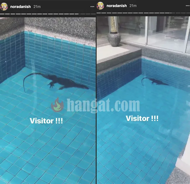 Namun disebalik saat-saat menunggu waktu bersalin, siapa sangka kediaman Nora dimasuki tetamu yang tidak di undang. Saat dia tengah sarat mengandung ini, Nora dikejutkan dengan seekor biawak memasuki kolam renang di kediamanya. Petanda apakah ini?