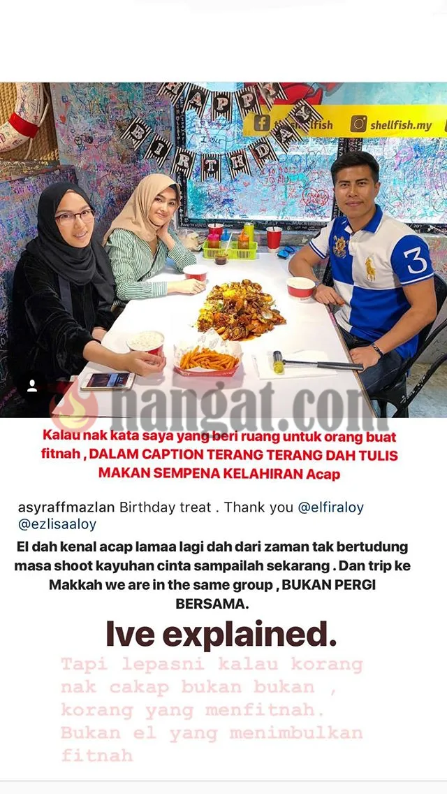 Seperti menguatkan spekulasi berkenaan, terlihat Insta-story Elfira bersama kakaknya yang meraikan ulangtahun kelahiran Asyraff di sebuah restoran. Ditambah pula, Asyraff memuat naik gambarnya bersama Elfira ketika di Mekah awal bulan lalu berserta kapsyen yang agak romantis.