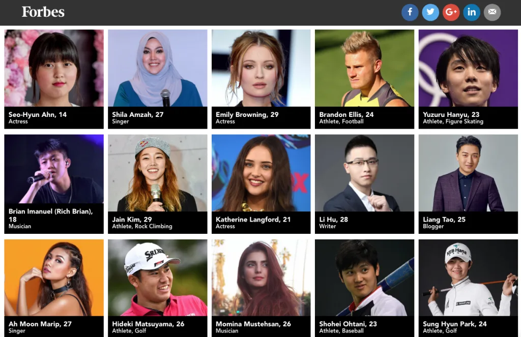 Semua individu yang menerima penghargaan itu berusia di bawah 30 tahun dan dipilih oleh para penilai yang merupakan antara tokoh terkemuka dalam bidang mereka masing-masing.