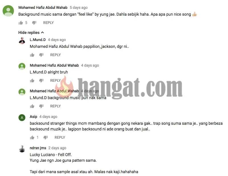 Memang sedap susunan muziknya. Layan pula dengar tatkala kami menghayati lagu berkenaan. Cuma ada yang memberitahu kami, melodi lagu berkenaan hampir sama dengan lagu yang dinyanyikan oleh Yung Jae feat Heartbreaka & Stupid Young berjudul Feel Like.