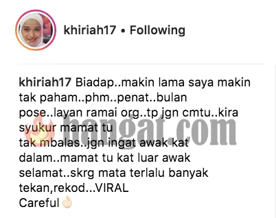 Ikuti luahan 3 selebriti ini yang dirangkumkan oleh murai.my dari entri terbaru Instagram mereka.