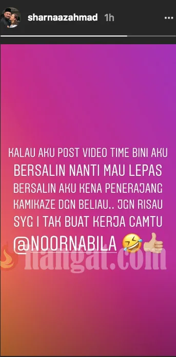 “Kalau aku post video time bini aku bersalin nanti mau lepas bersalin aku kena penerajang kamikaze dengan beliau.. Jangan risau sayang, i tak buat kerja camtu”