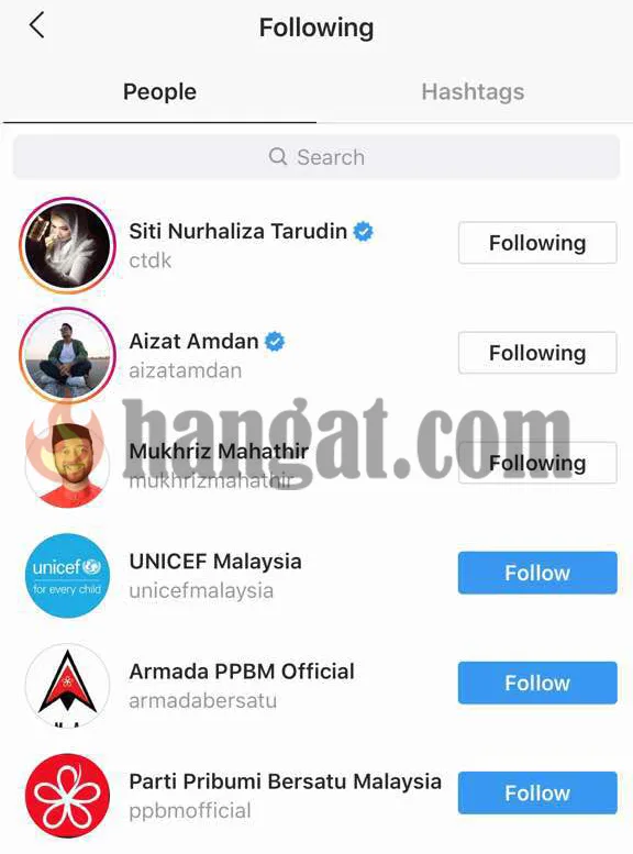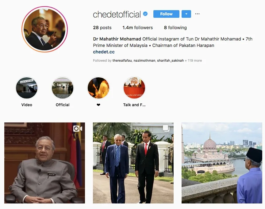Jika anda lihat di ‘Following’ Instagram Dr Mahathir, hanya ada 8 akaun Instagram yang beliau ikuti termasuklah penyanyi nombor 1 Malaysia, Datuk Seri Siti Nurhaliza.