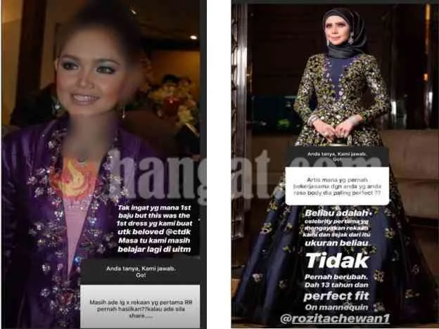 Ketika ramai yang tertanya siapakah selebriti pertama yang menggayakan jenama mereka, pereka terkenal ini menjawab Rozita Che Wan atau lebih dikenali sebagai Che Ta adalah di antara yang pertama.