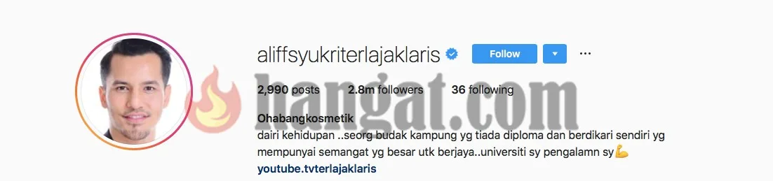 Usahawan ini mempunyai 2.8 juta pengikut di Instagram nya dan lebih dari 100 ribu pengikut di YouTube.