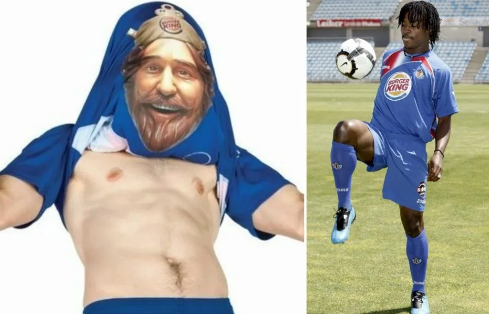 Tak hanya Atletico Madrid, Getafe juga memiliki jersi rekaan pelik. Di tahun 2009, mereka mengeluarkan jersi dengan gambar jenama burger terkenal.