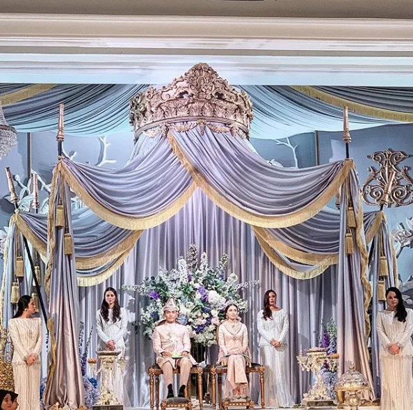 Bagai Pinang Dibelah Dua, itu gambaran yang diberikan buat pasangan diraja Tengku Bakar dan Tengku Iman Abdullah ketika bersanding dalam majlis serba-serbi penuh seri hasil kerja tangan Glam Wedding. Lebih mempesonakan, mempelai menyarung busana songket rekaan Dato’ Rizalman Ibrahim.