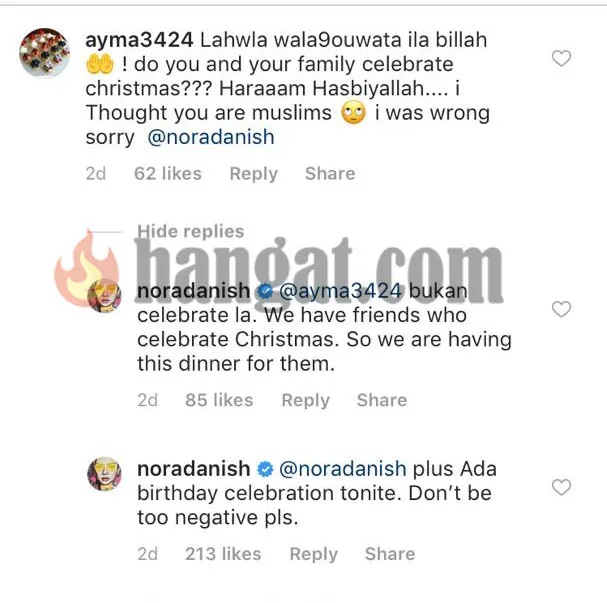 Tak pasal-pasal netizen ini yang mendapat malu, ternyata Nora bukanlah meraikan sambutan hari krismas, tetapi sekadar menyertai sambutan hari jadi, makan malam bersama teman-temannya.
