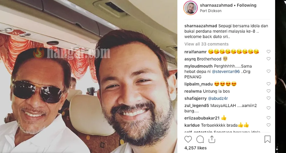 Menerusi posting terbaru Sharnaaz Ahmad di instagramnya, dia sempat berswafoto dengan Ahli Parlimen Port Dickson Datuk Seri Anwar Ibrahim dengan diiringi keterangan.