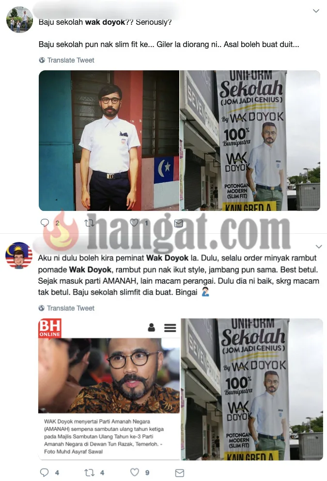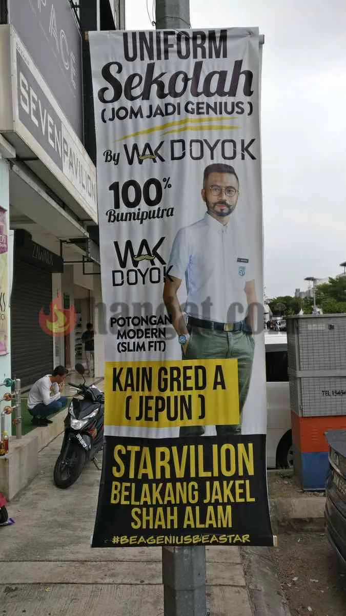 Mengambil kesempatan atas sesi persekolahan yang dibuka, selebriti yang juga ikon fesyen terkenal, Wak Doyok bijak mengambil peluang dengan mengeluarkan baju seragam sekolah bagi remaja lelaki. Menariknya mengenai baju sekolah itu, ianya direka dengan menggunakan konsep ‘slim fit’ mengikut bentuk badan si pemakai.