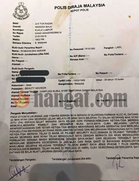 Mangsa juga sudah membuat laporan polis berhubung kejadian itu. Difahamkan mangsa mengalami kecederaan di jari dan muka akibat dipukul oleh 3 orang bersama suspek, malah telefon bimbitnya hilang sewaktu kejadian berlaku.