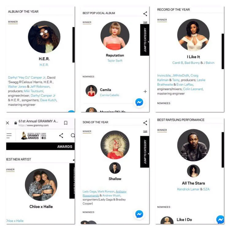Dedah pengguna itu, keputusan yang bocor itu menyaksikan beberapa nama besar seperti Taylor Swift merangkul anugerah Album Pop Terbaik bagi album Reputation manakala penyanyi rap, Cardi B memenangi kategori Rekod Terbaik menerusi lagu I Like It dan lagu Shallow nyanyian Lady Gaga pula menerima trofi Lagu Terbaik.