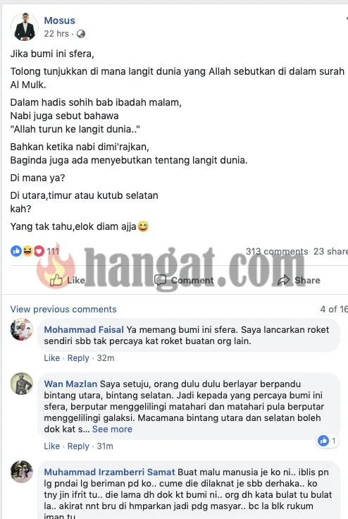 Malah dalam kenyataannya yang lain, Suhaimi turut meminta netizen untuk menunjukkan kedudukan langit dunia seperti disebutkan dalam surah al-Mulk. Kenyataan tersebut mencetuskan perdebatan hangat dikalangan netizen selain menyifatkan pandangan Suhaimi seolah-olah sudah terpesong.