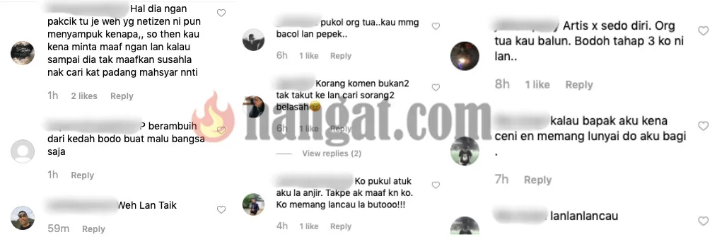 Sedia menerima segala kutukan, Lan berjanji perkara seumpama itu tidak akan berulang lagi kelak. Menerusi carian kami di laman Instagram nya, rata-rata netizen terus memberi kecaman dan sehingga kini posting terbaharu pelawak itu mencecah lebih dari 5 ribu komen. Apa pun, diharap Lan akan mempelajari kesilapan yang lalu dan akan terus sukses dengan karier nya kelak.