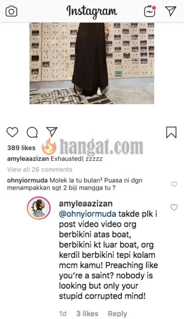 Dalam komen yang sama, individu tersebut nampaknya terus bersikap agresif dengan melontarkan kata-kata kesat. Tak puasa mungkin?