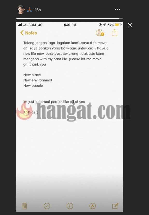 Biarpun kedua-dua selebriti ini sudah berpisah selepas diumumkan Datuk A.Aida baru-baru ini namun semalam perkongsian dari Ariff Aziz menerusi Insta-story bya ternyata menimbulkan spekulasi dikalangan peminat.