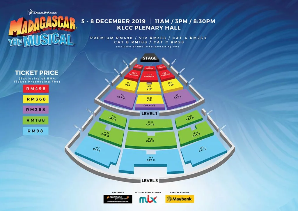 Nak tahu bila? Ia berlangsung pada 5 hingga 8 Disember 2019, di mana karakter -karakter kegemaran anda dari filem Madagascar ini bakal membuat persembahan secara langsung di Dewan Plenary di KLCC yang menjanjikan keseronokkan dan lawak pecah perut melalui tarian dan muzik dalam adaptasi muzikal ini.