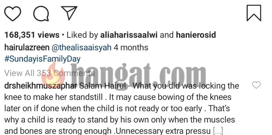 Terbaru, aksi yang sama turut dilakukan kepada anak kedua mereka, Alisa Aisyah. Jika sebelum ini, ramai yang kagum dengan aksi tersebut kali ini berlainan pula kerana ianya telah mengundang kecaman netizen.