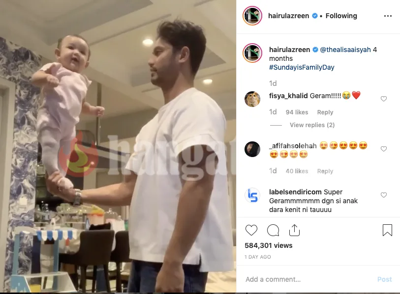 Suatu ketika dahulu, pelakon Hairul Azreen mencuri perhatian peminat dengan membiarkan anak sulung mereka, Yusuf Iskandar yang masih kecil ketika itu berdiri di atas tangan Hairul.