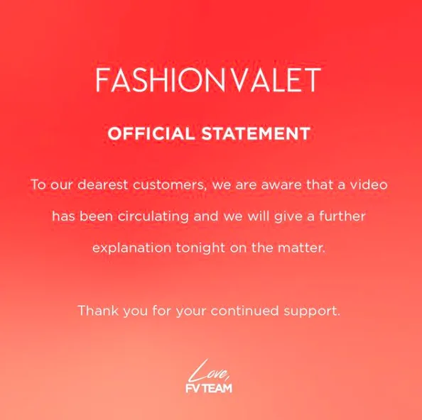 Susulan daripada kenyataan itu seperti yang dijanjikan oleh mereka, Fashion Valet tampil memuat naik satu posting terbaharu. Seperti yang dijangka, video amukan dari wanita itu sebelum ini ternyata hanyalah sebuah gimik perniagaan mereka yang akan diadakan bersempena dengan promosi jualan 11 November.